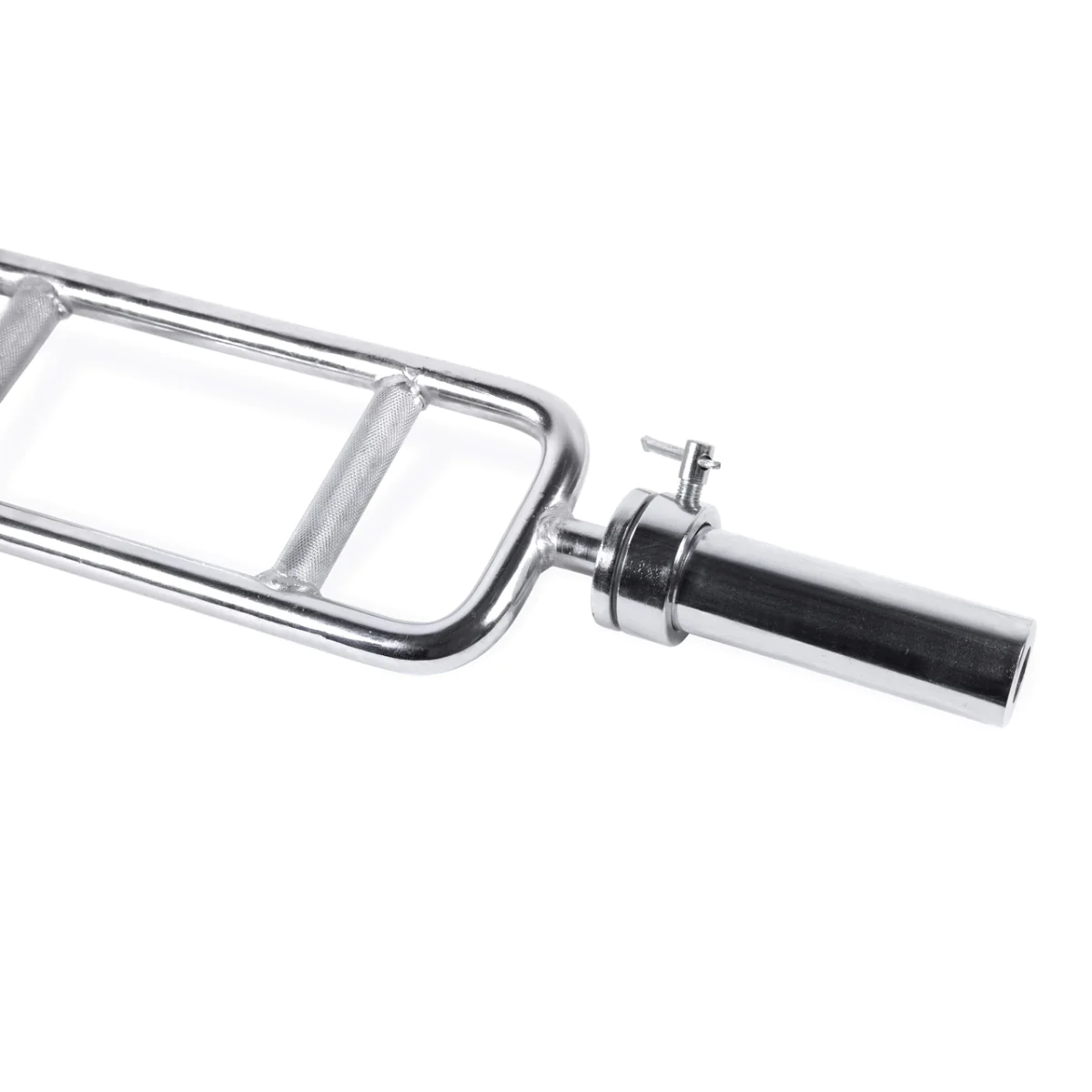 CAP Barbell 34″ Economy Olympic Tricep Bar with Collars – The OB-34S by CAP Barbell is a solid steel Olympic style triceps bar with neutral grips (palms facing each other) that is used to train the triceps, biceps and forearms. Add thickness and power to all three heads of the triceps by doing tricep extensions and close grip presses. For bicep and forearm development, users can perform standing hammer curls. The OB-34S features knurled solid steel grips and 2″ diameter rotating sleeves that accept all sizes of Olympic plates. Olympic screw down collars will keep weight plates snug and secure during your arm workouts. A triceps training bar makes a nice addition to any garage gym or commercial gym and will greatly expand your arm training program for more strength and muscle gains.