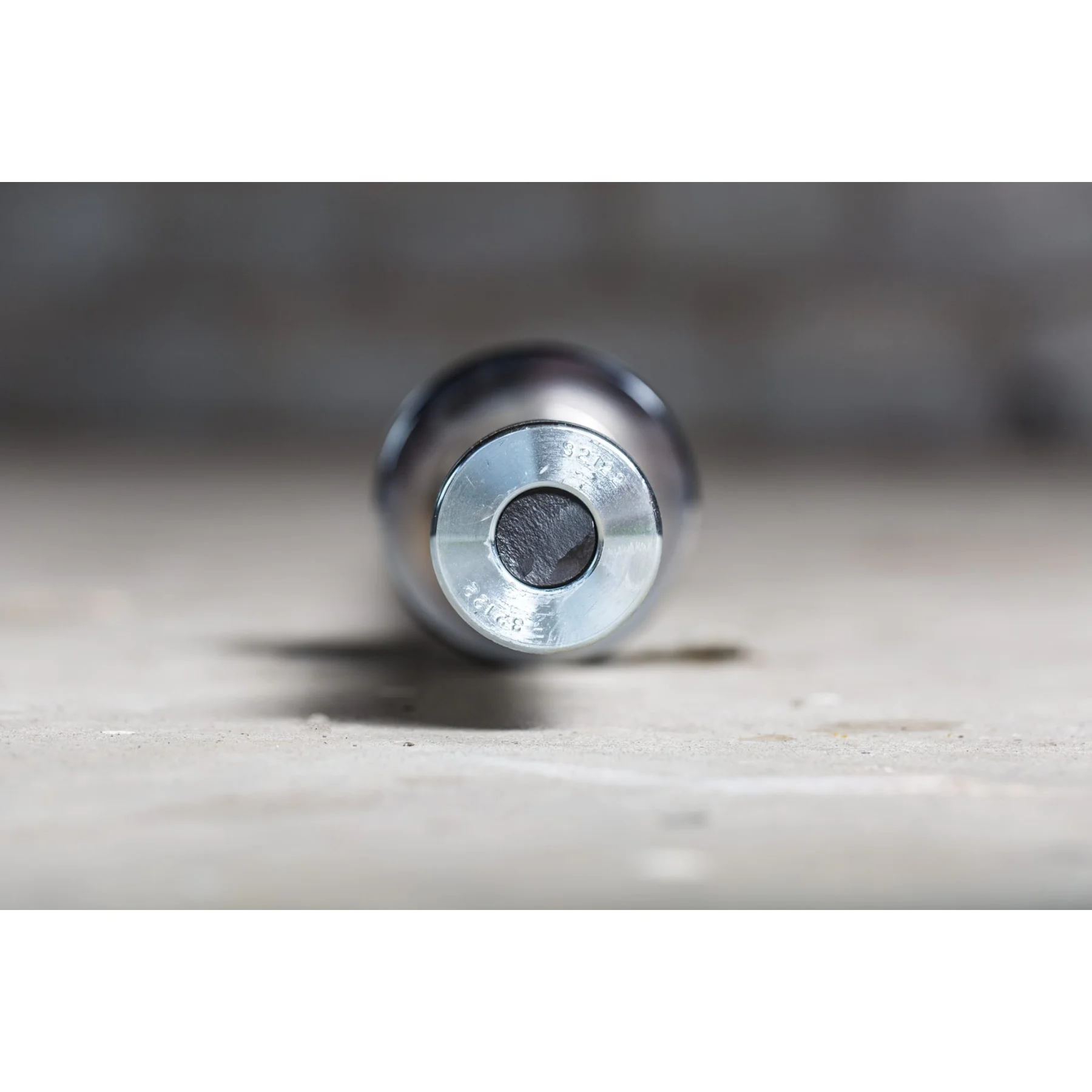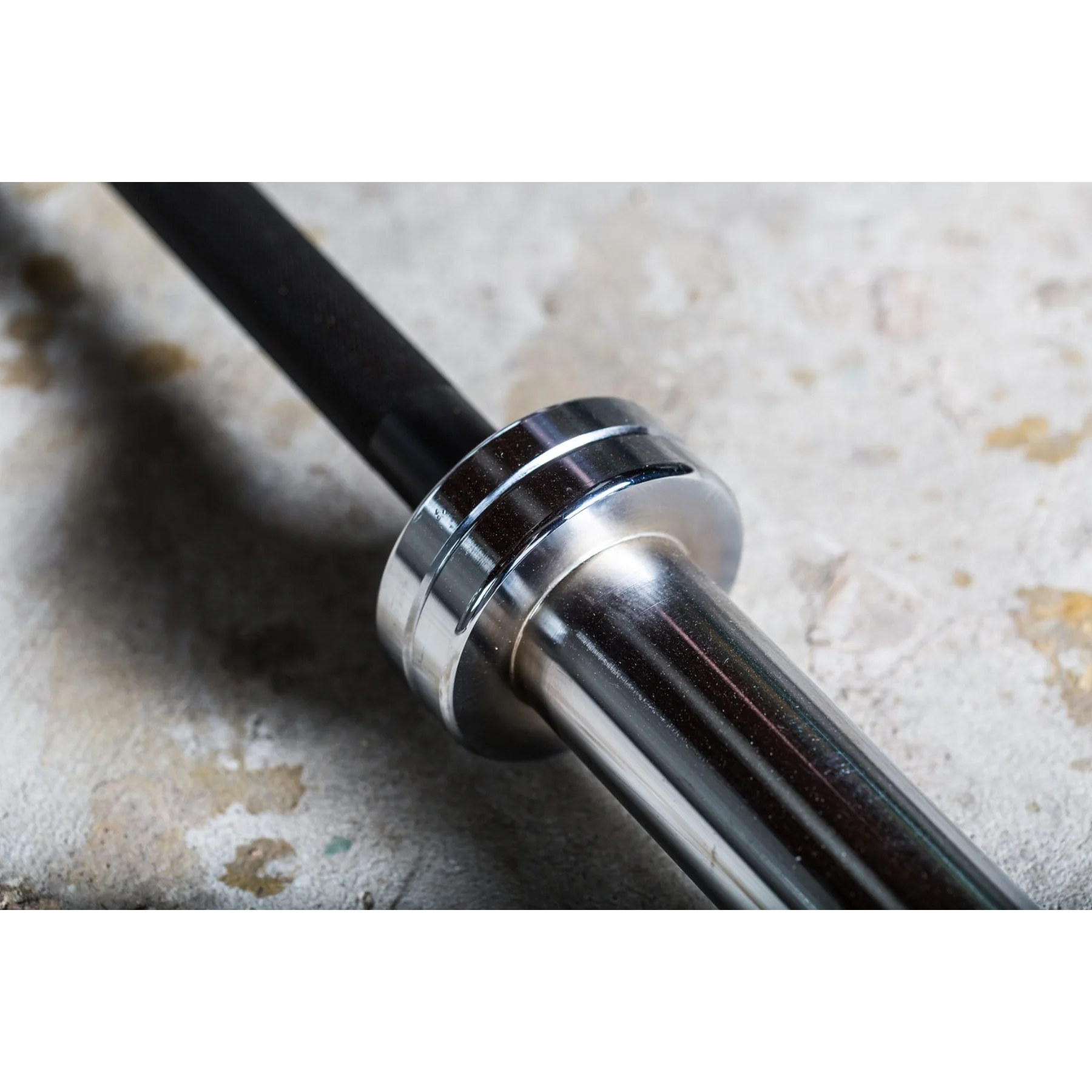 It is less flexible, more rigid, and excellent for use when performing static, highly controlled, slow movements such as the squat, chest press, and deadlift. It is also an excellent weight bar for Olympic lift training. The sleeve is secured on the bar using a bar end nut and spring pin. Sleeves are machined to a precise 1.975” diameter to accommodate 2” Olympic Plates.