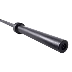 The 7′ long OB-85B Olympic barbell has a finish consisting of black oxide throughout the entire bar including the gripping area and sleeves. Each weight sleeve spins freely eliminating unnecessary torquing on the users wrists while lifting. The 51.5″ gripping area between the bar shoulders is optimal for squatting and benching leaving plenty of room for a wide grip.
