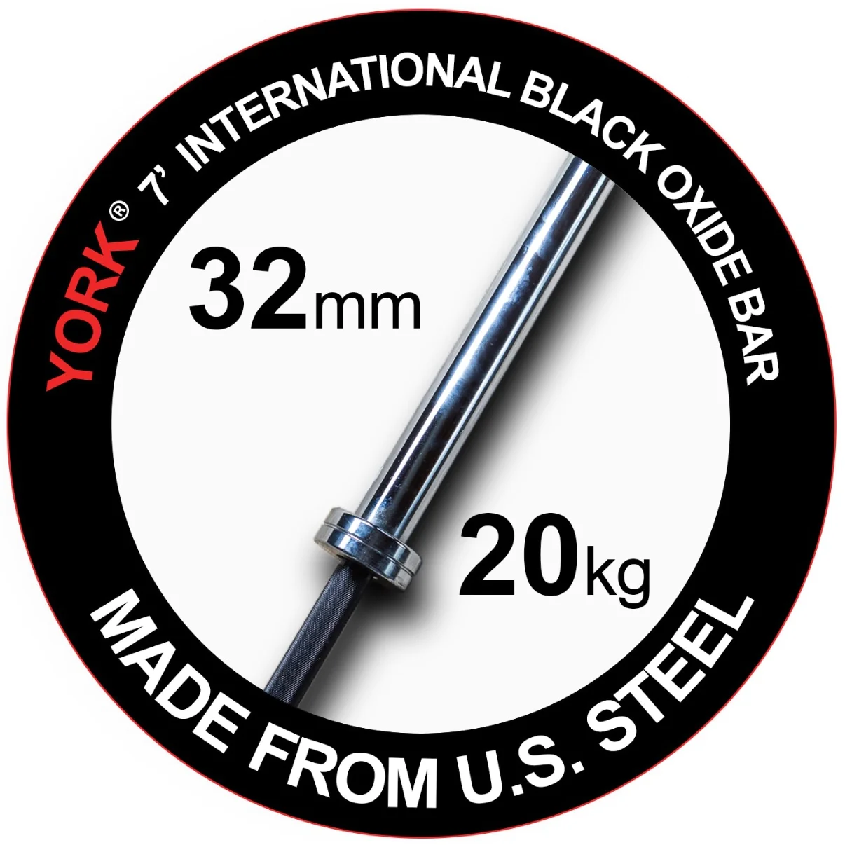 York Barbell 7 North American Made 1,500 lb. Capacity Olympic Bar | Black Oxide – The 32120 7 long x 32mm diameter Olympic Weightlifting Bar by York Barbell features a 1,500 lb. capacity for performing heavy Olympic style weightlifting in CrossFit boxes, performance training centers and