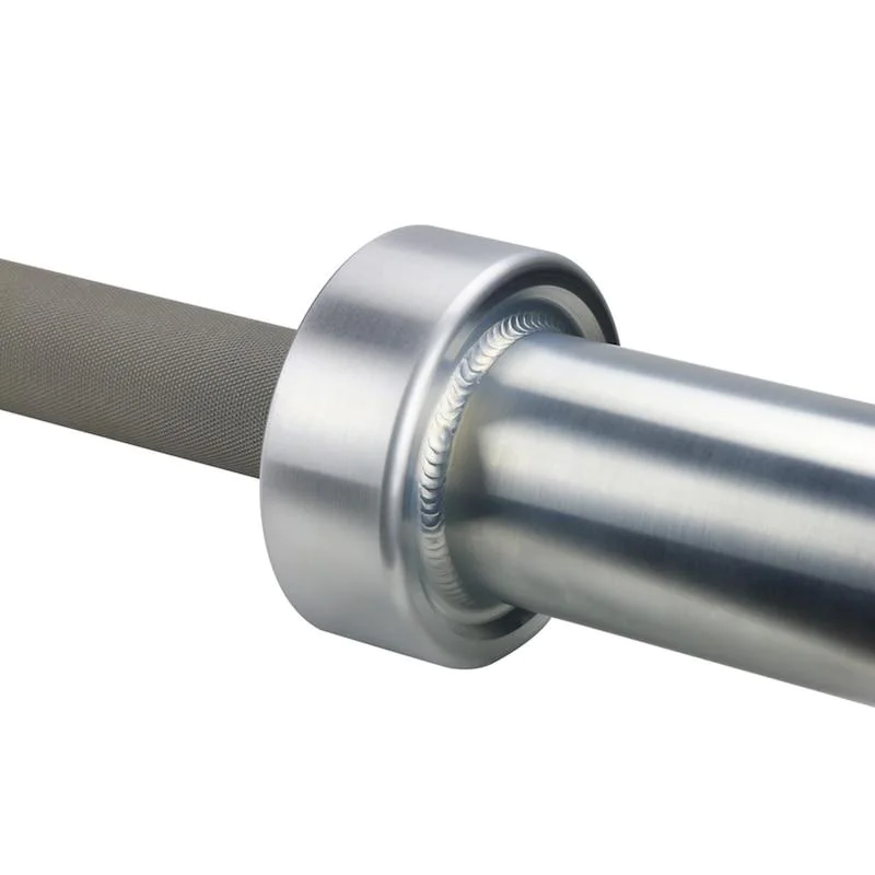 An IPF (International Powerlifting Federation) Bar will be stiffer, have a closer hand grip measurement and have bushings in the rotating sleeves to minimize rotation speed. The knurl area goes all the way out to the sleeves.