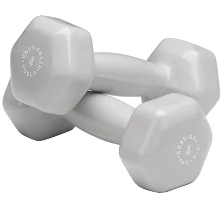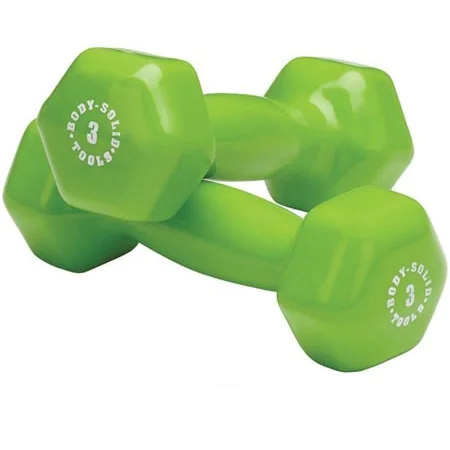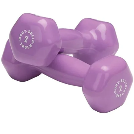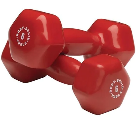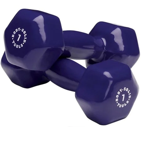 Color Coded Vinyl Dumbbell Pairs – Vinyl dumbbells, also referred to as Vinyl hex dumbbells or Aerobic hex dumbbells, have been used in homes, training studios and commercial gyms for many years. Their bright colors and compact sizes with small incremental weight increases is appealing to many. Vinyl dumbbell handles feature a contoured grip that is easy to hold for extended periods of time which is ideal for physical therapy training as well as group fitness training including Step aerobics. Use them to burn more calories while walking or power walking. Perform light weight dumbbell exercises for toning and increasing strength in the comfort of your own home. They can be used with a weight bench to perform chest presses, flyes, shoulder presses and lat rows or use them as a stand-alone fitness tool for other exercises such as alternating bicep curls, tricep extensions, squats and lunges.