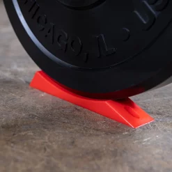 Body-Solid Tools BSTOPW Deadlift Wedge β The Body-Solid BSTOPW Deadlift Wedge is small, portable powerlifting tool used as an Olympic plate wedge to assist with easier plate loading and unloading during deadlift training and other floor-starting weightlifting movements. Constructed from heavy-duty silicone resin with a non-slip surface, the Deadlift Wedge can handle nearly any weight load for the heaviest of training sessions. To use the BSTOPW Deadlift Wedge, start by putting a pair of “base” plates onto your Olympic bar or Olympic hex trap bar. Next, simply roll the moderately loaded bar forward and up the ramp of the wedge, letting the bumper plate or weightlifting plate cradle inside the curvature of the wedge. Once positioned inside the wedge, both bar and weight plates are elevated 1/2″ above the floor. Slide additional weight plates onto the bar next to the base plates already cradled within the wedge. Since the wedged design of the BSTOPW prevents rolling and rocking, It will now be easier than ever to load any amount of additional weights quickly and safely during training. The BSTOPW can be used by itself one side at a time, and fits nicely into any gym bag as a portable lifting tool. Or, utilize two Deadlift Wedges to elevate the entire bar at once. Some may choose to mount two Deadlift Wedges to a power platform using the provided anchor holes, so that wedges are permanently positioned at proper width and are always available in close proximity for stress-free plate loading assistance.