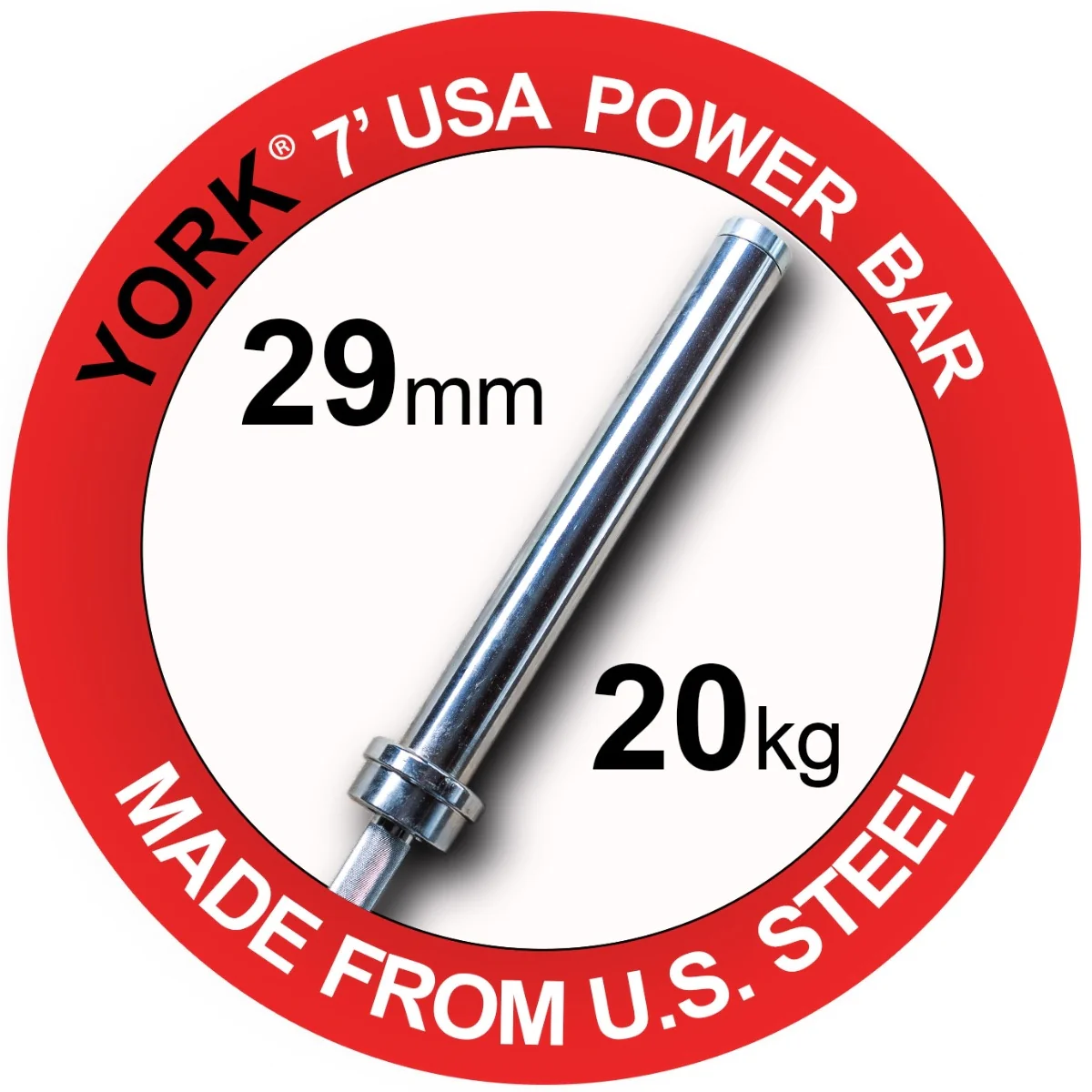 York Barbell 7 Elite Olympic Power Training Bar | Chrome – The 32004 North American Elite Olympic Power Bar by York Barbell is forged from heat treated, North American steel with a weight capacity of 185,000 PSI. The 32004 is a rigid bar with less flex