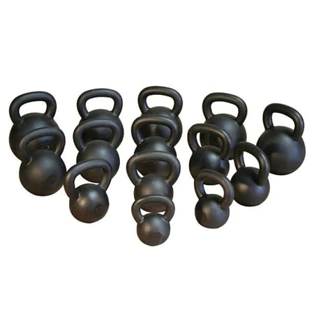 Body-Solid Kettlebells β What are the best Kettlebells for garage gyms? A legendary Russian exercise device best described as cannonballs with handles, the kettlebell has long been a favorite for those seeking a special edge in strength and endurance. Today kettlebell workouts, which produce particularly impressive gains in the legs, hips and shoulders, are all the rage. There are more muscles involved in balance and leverage with the kettlebell you work every muscle just keeping them up and moving them around you. Body-Solid Kettlebells come in a range of weights to help you build strength, increase endurance and improve agility incrementally as you become accustomed to using them for squats, throws, clean and jerks, snatches, rotational swings, and many more exercises. Body-Solid Kettlebells are available in 5 lb. increments from 5 pounds to 75 pounds. Purchase a complete set for variety and a steady progression to the intensity of your workouts.