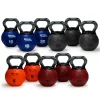 Body-Solid KETTLEBALLS Vinyl Dipped Kettlebells – The Body-Solid Kettleball is a kettlebell like no other, providing more safety, more control, and added versatility over any standard kettlebell. The Kettleball combines the benefits of a dumbbell and a kettlebell into one revolutionary product. An innovative patent pending design includes a more stable and ergonomic handle allowing users to perform upright rows, bicep curls, tricep extensions and a multitude of core movements. The wide handle is uniquely designed with angled bends throughout, allowing the exerciser to firmly grasp the kettleball on a straight surface in a variety of positions, rather than on a curved handle as with traditional kettlebells. In addition, the handle is offset at an angle from the ball, allowing the flat side of the kettleball to rest comfortably against the forearm without causing the wrist to bend backwards. Focusing on safety, the Kettleball reduces unwanted stress on the wrist, elbow and shoulder making it perfect for both beginners and veterans alike in settings such as physical therapist rehabilitation, home gyms, hotel fitness centers, and personal training studios. The durable vinyl coating prevents chipping and helps protect floors, kettlebell storage racks, and other equipment. Vinyl covered Body-Solid Kettleballs are available in 5, 10, 15, 20, 25, 30, 35, and 40 pound increments.