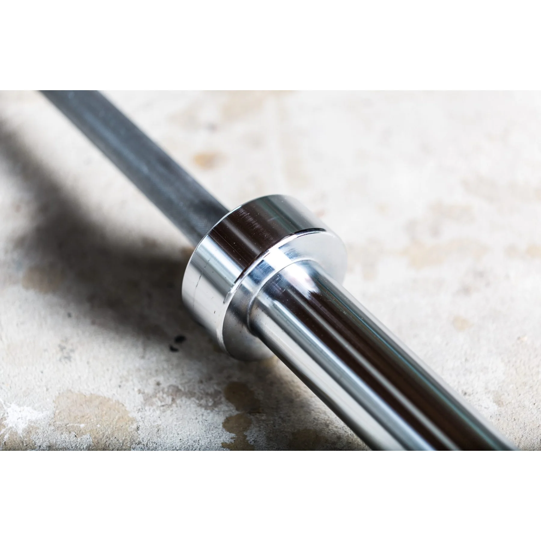 York Barbell 7 Men’s Elite 20kg Competition Training Bar | Chrome – The 32002 North American Elite Competition Olympic Weight Training Bars for Men by York Barbell are made from the highest grade steel with a minimum yield strength of 190,00 PSI. Bars are calibrated to be accurate to within +0.01% and -0.05%. Sleeves are machine finished to a precise 1.975 inch diameter accommodating for any 2″ diameter Olympic plate. Sintered-ferous bushings, impregnated with oil, facilitate free and constant rotation of the bar without allowing counter-rotation of the weights. And a 28mm bar shaft with diamond knurl grip pattern ensures proper grip during all Olympic lifts.