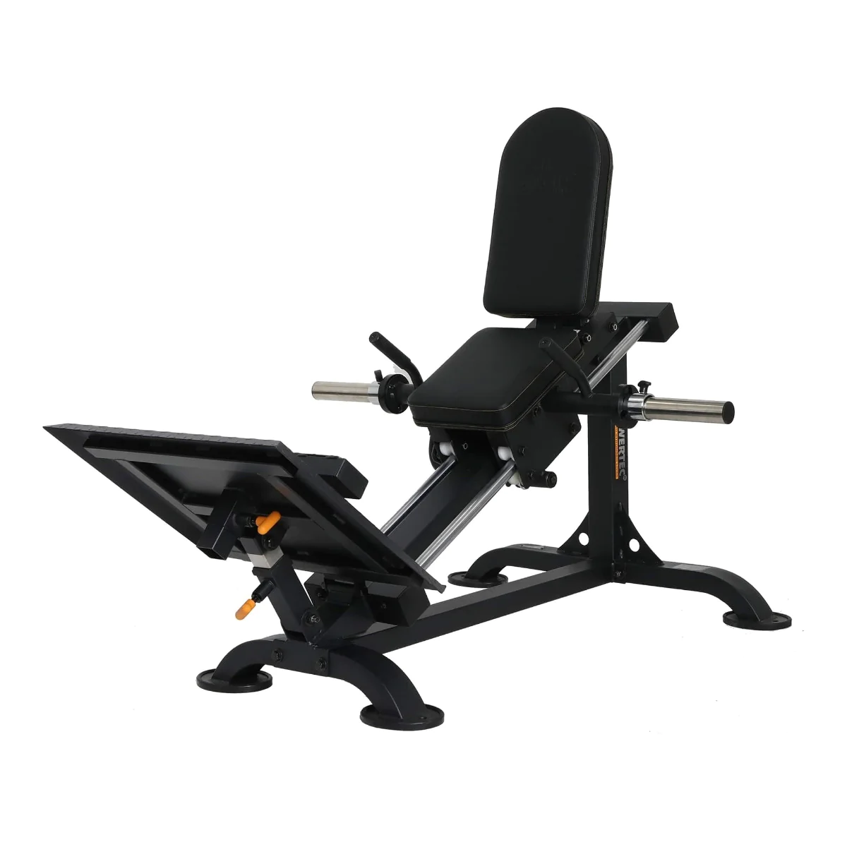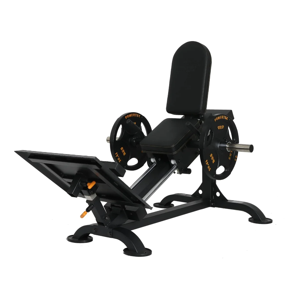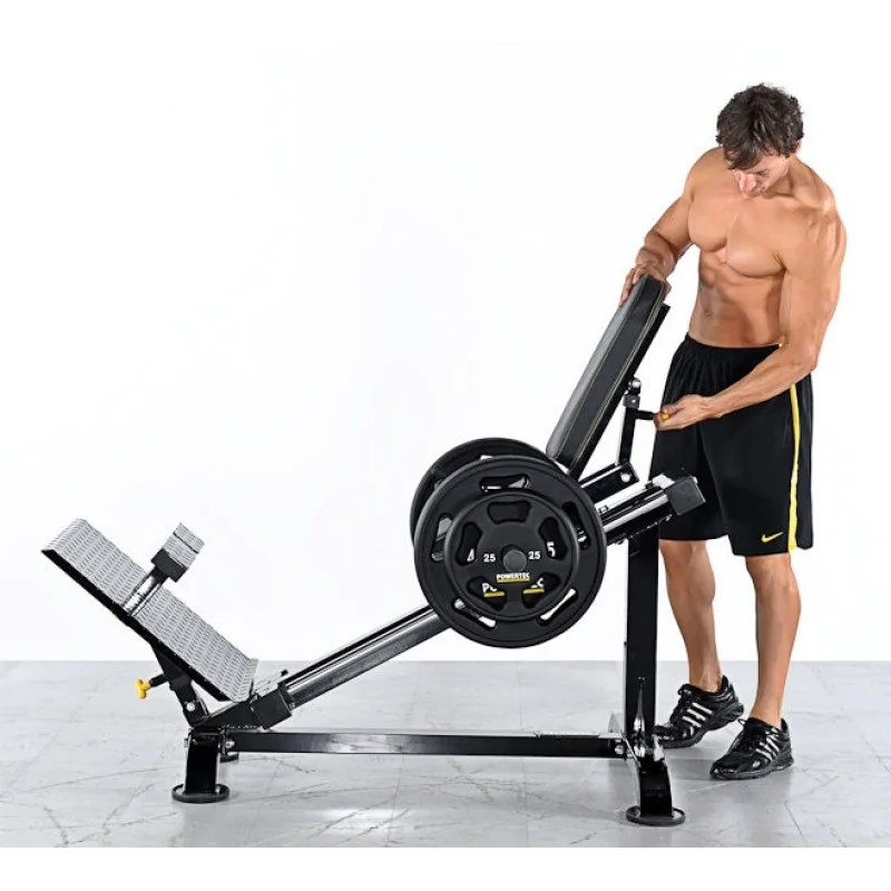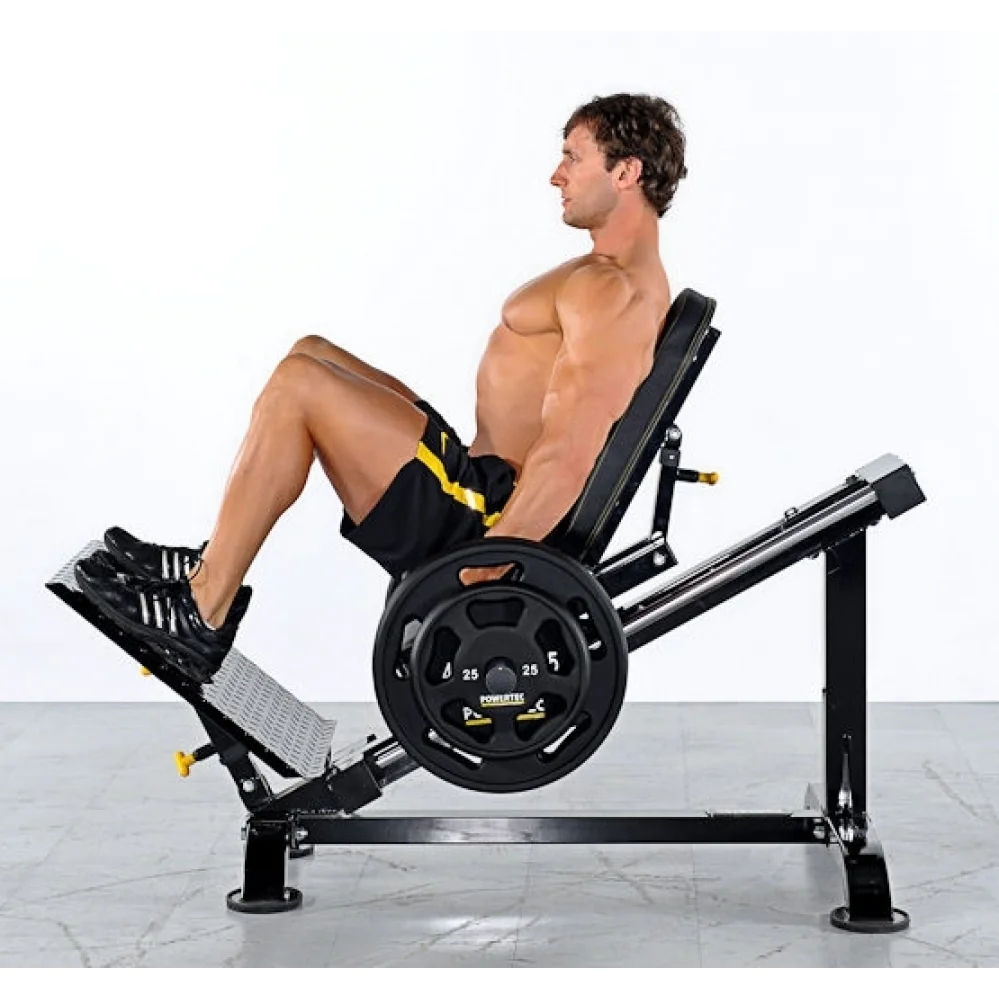 Build strong legs with the most effective, compact leg press anywhere. The comfortable, adjustable back pad cradles you in place and provides the ultimate back support. The machine also incorporates a built in mechanical stop mechanism that allows the user to start and stop at their desired height. The extra large footplate allows for multiple positioning. The sled rides on ultra-low resistance nylon bearing driven wheels for a smooth and quiet operation. A removable calf block is also provided to perform calf raises for a complete leg workout. While the footprint is quite compact, the leg sled still allows for full calf raise for most users.