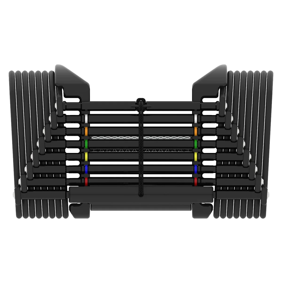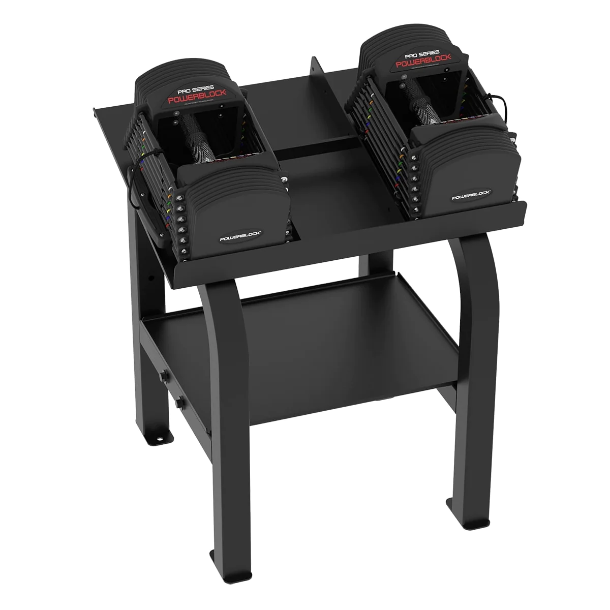 PowerBlock Pro Rack Stand – Each PowerBlock Pro 50 Dumbbell Set comes with a Pro Rack Stand. The Pro Rack Stand provides functional storage that fits next to any Power Rack or Weight Bench while taking up minimal space. The lower tray can hold another set of dumbbells, battle rope, or the PowerBlock Adjustable Kettlebell to add diversity and organization. Want even more versatility in your PowerBlock dumbbell storage? By upgrading to the Pro Max Stand with Commercial Casters your dumbbell set and rack are now mobile and can be easily relocated to any location of your facility. Commercial grade casters make it easy to roll on different types of flooring including rubber mats and wheels can be locked in place to prevent rolling.