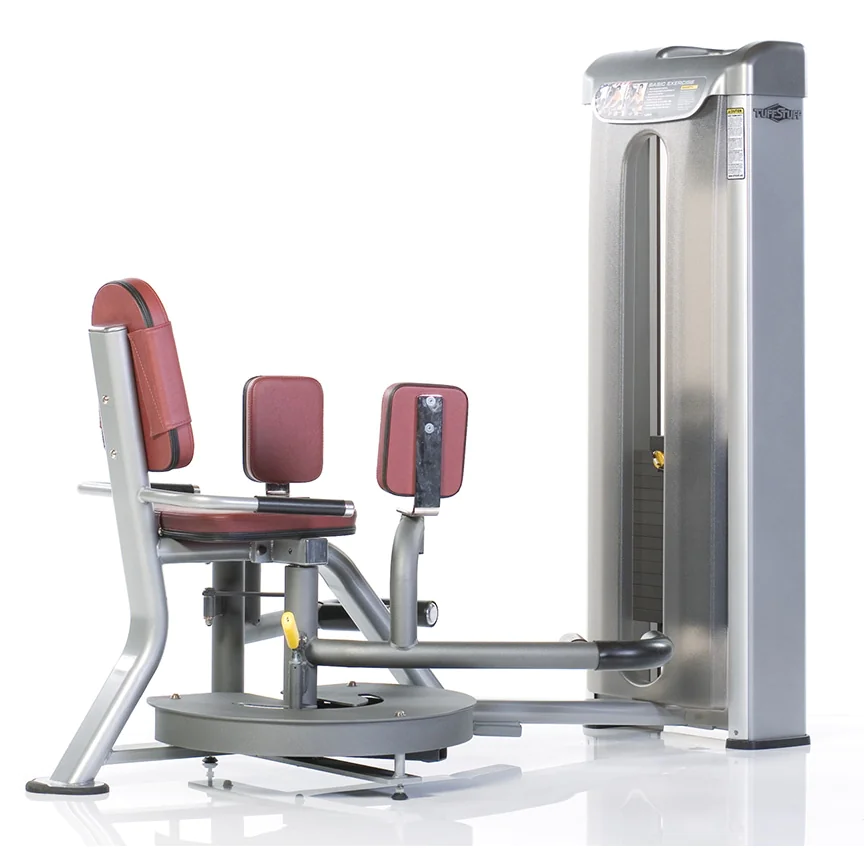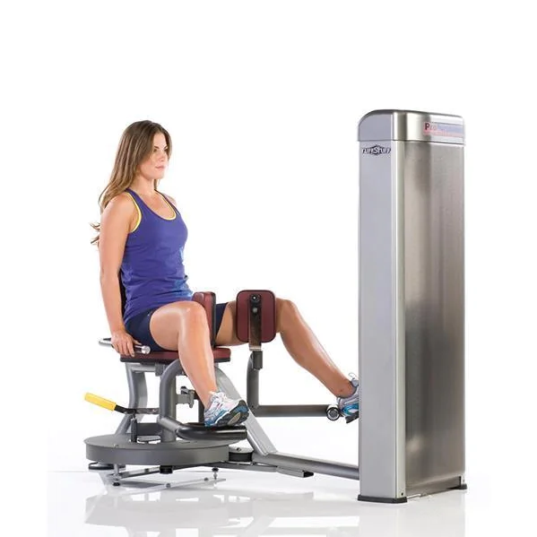 Proformance Plus PPD-807 Inner/Outer Thigh – The selectorized Proformance Plus Inner/Outer Thigh machine by TuffStuff offers a great way to tone and strengthen the hip abductors and adductors that are commonly neglected with other forms of leg training. While squatting, deadlifting, and leg pressing train the quadriceps and hamstrings thoroughly, you may need additional work for the inner and outer thighs. Abduction and adduction have long been popular exercises with female trainees for their toning and shaping attributes, while males have been reluctant to utilize them. Training these movements can be highly beneficial to anyone, male or female, who is looking to improve their squat performance. Inward knee wobble, or drift, is a common error in squatting that is often attributable to weak hips. Strengthening the abductors and adductors corrects this weakness and adds stability when squatting or in any athletic endeavor requiring lateral movement. For example, a linebacker who is required to cover ground laterally down the line of scrimmage would do well to augment his leg training with a few sets of abduction and adduction on the inner/outer thigh machine.