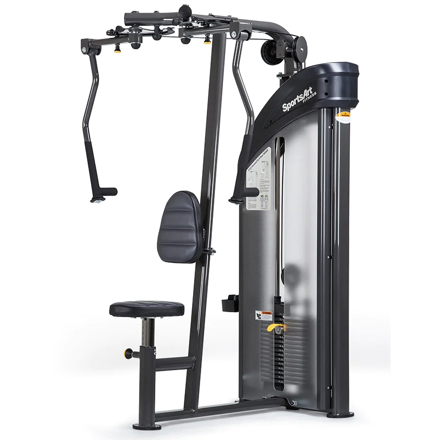SportsArt DF-204 Dual Function Pec Fly and Rear Delt Machine – The DF204 Pec Fly and Rear Delt Machine by SportsArt Fitness is a two-in-one commercial-grade strength machine with selectorized stack which targets and builds the pectoral (chest) and rear deltoid (shoulder) muscles of the upper body. Specially designed cams provide unparalleled ergonomics throughout the entire motion for optimal exercise biomechanics. The Dual Function Series by SportsArt combines quality and value in a simple, easy-to-use strength line designed to fit any budget. Each unit is built using the highest quality materials and backed by over 38 years of excellence in fitness equipment manufacturing. The lowered stack height and compact footprint help to avoid visual clutter in smaller spaces, while adjustable seats and range-of-motion limiters ensure movements are comfortable and biomechanically correct. Premium precision steel plates incorporate sound dampeners to keep the stack motion as quiet as possible. Magnetized weight selector instantly locks into place, providing an easy-to-use and secure operation. The unique fork style delivers more stability than traditional selector pins, while the retracting cord eliminates clutter and keeps the selector within reach. Contoured and molded pads made from tear resistant marine grade upholstery provide comfort and ergonomic support for a variety of movements. The result is a durable, value-engineered line that delivers maximum results in a compact design. SportsArt Dual Function Series machines are easy to use and provide a challenging workout that accommodates users of all levels, from beginners to advanced trainers. Each Dual Function Series machine is designed to train both major and minor muscle groups while offering the variety necessary to help users reach their goals.