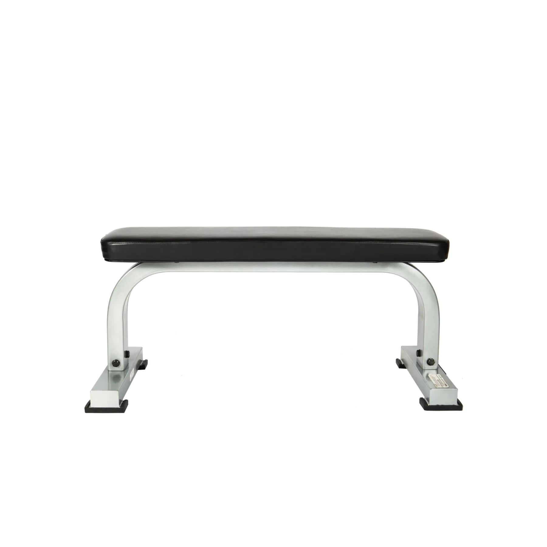 York Barbell Flat Utility Weight Lifting Bench – The 54026-55026 Flat Utility Bench for Dumbbells and Barbells by York Barbell is designed and built for commercial use in school weight rooms, performance training centers and commercial gyms. It is fabricated from 2 x 3 x 11 gauge steel that is finished with baked-on powder coating with your choice of white or silver. Dense 2 thick padding offers plenty of support and comfort when performing heavy dumbbell or barbell presses. Position in front of a dumbbell rack to perform dumbbell presses, chest flyes, lat rows, rear delt flyes or dumbbell lat rows. Use an EZ-curl bar for tricep extensions or close grip presses. Or use the York flat utility bench for barbell chest presses in a Smith machine or power rack. The utility weightlifting bench by York is so simple yet so functional.