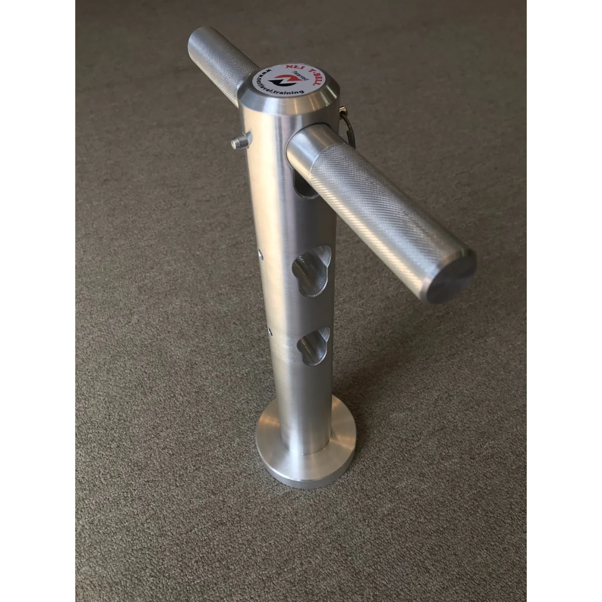 T-Bell Weightlifting Technique Training Device – The T-Bell is a simple yet effective free weight training device that serves as a progression tool to help athletes advance safely and effectively while strengthening the core, posterior chain, glutes, and quadriceps. Individuals new to strength training, young athletes developing proper lifting techniques, athletes in post-injury rehabilitation, and even seasoned athletes looking to perfect form and accelerate results can benefit from using the T-Bell. Trainee’s can adjust the T-Bell handle to the middle setting, which is the same height as a loaded Olympic bar, and practice deadlifting technique while properly stacking the spine and avoiding injury.