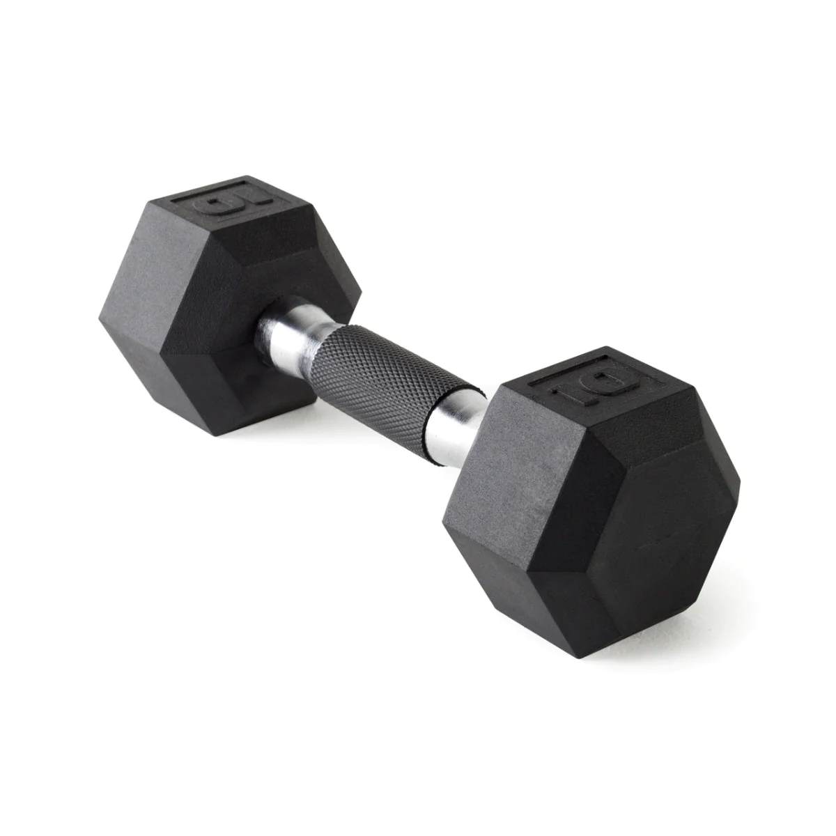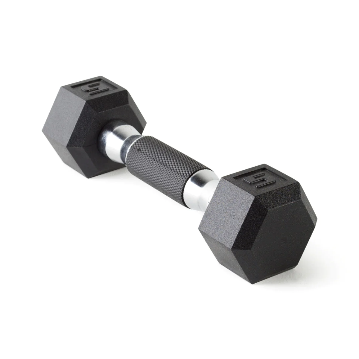 CAP Barbell Urethane Hexagonal Head Dumbbell Sets – CAP Barbell Urethane Hex Dumbbells look just like their Rubber Hex Dumbbell counterpart with a few important advantages. First and foremost, polyurethane is known for being a much more durable coating than rubber. Urethane is cut and abrasion resistant, which, when used to coat the heads of dumbbells equates to a much more durable dumbbell that will retain its esthetics for many years. Urethane will resist scuffing and marking floors and other equipment such as dumbbell benches. If you are purchasing your urethane coated dumbbells to be used in a home within a small room you will be relieved to discover that urethane dumbbells do not carry a strong odor like some rubber coated dumbbells can. And the durable urethane inlaid contoured handles add additional grip for sweaty hands. These grips will not expand with heat and moisture like rubber handles can and will offer a consistently reliable gripping surface throughout your hex dumbbell workouts.
