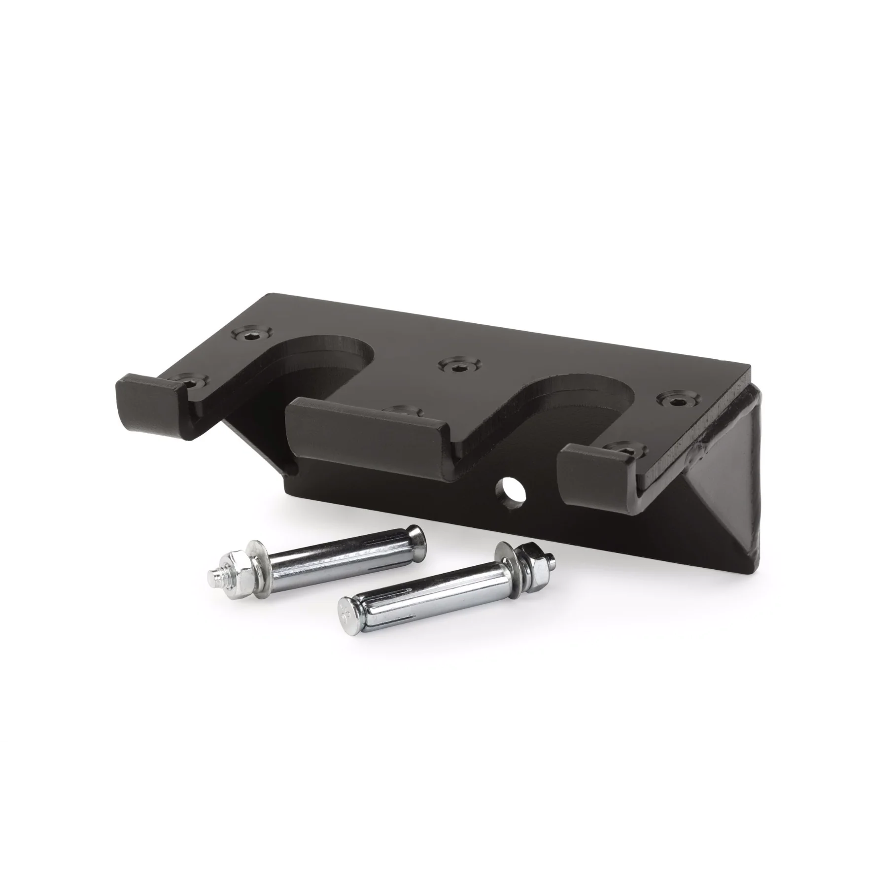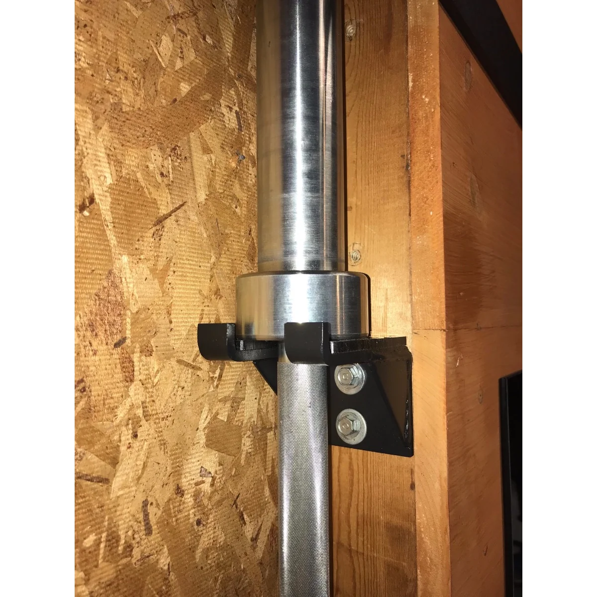 Wall Mounted Olympic Bar Holder – The IRON COMPANY Wall Mounted Bar Holder is available in both single bar and double bar options. Wall mounted bar holders, or vertical bar hangers as they are also called, eliminate the need for additional floor space as is required by vertical floor racks with tubes. Wall mounted bar holders also eliminate wear and tear on your Olympic bar sleeve finish which is a common issue with floor mounted racks.