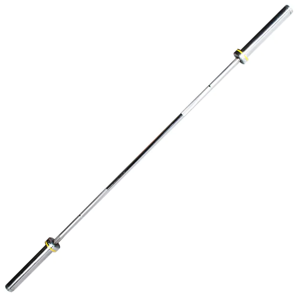 quenched and tempered high tensile strength with a PSI rating of 190,000. The 32001 is calibrated to Olympic specifications for maximum strength and flexibility and features color coded collars in yellow for easy identification. Bar sleeves include 8-needle bearings